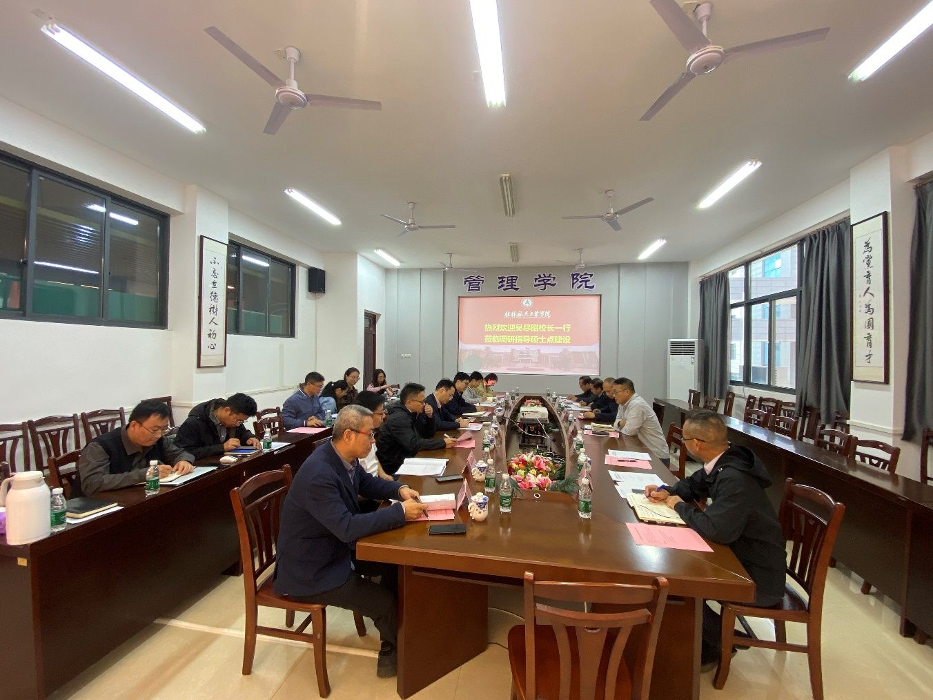 10月21日,吴尽昭校长一行莅临管理学院调研指导工程管理硕士点建设工作。教务处、科技处、人事处、发展规划处、三院、四院等部门相关负责人、管理学院领导班子、学位点骨干教师、硕士点建设办公室及教师代表参加了座谈会。