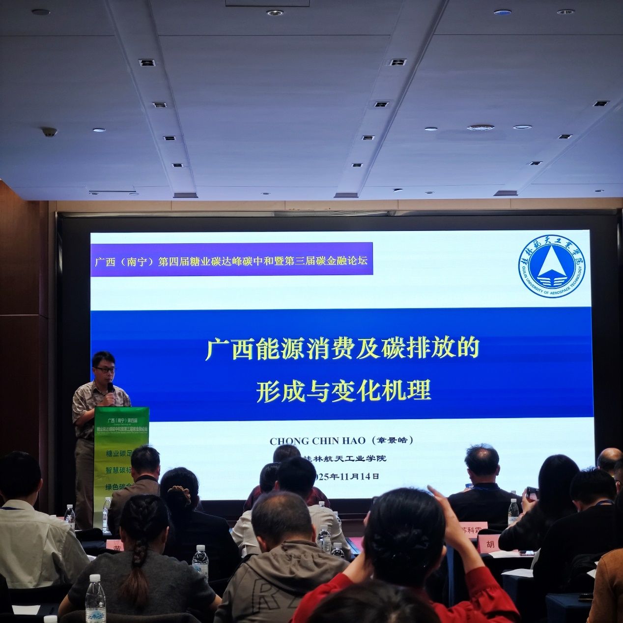 2025年11月14日,广西(南宁)第四届糖业碳达峰碳中和暨第三届碳金融论坛在南宁举行,我院专任教师CHONG CHIN HAO(章景皓)教授应邀出席并作大会报告《广西能源消费和碳排放责任的形成与变化机理》。
