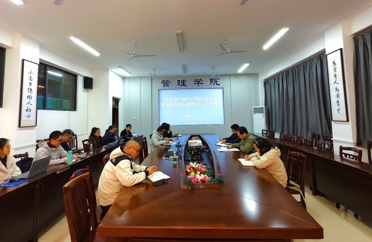 为精准查摆工作短板、凝聚发展共识,助力学校“十五五”规划科学谋划,3月9日,管理学院召开部门单位问题自查互点及学校发展问题摸底工作务虚会。学院领导班子成员、各专业负责人、科研团队负责人参加会议,共同为学院及学校高质量发展出谋划策。