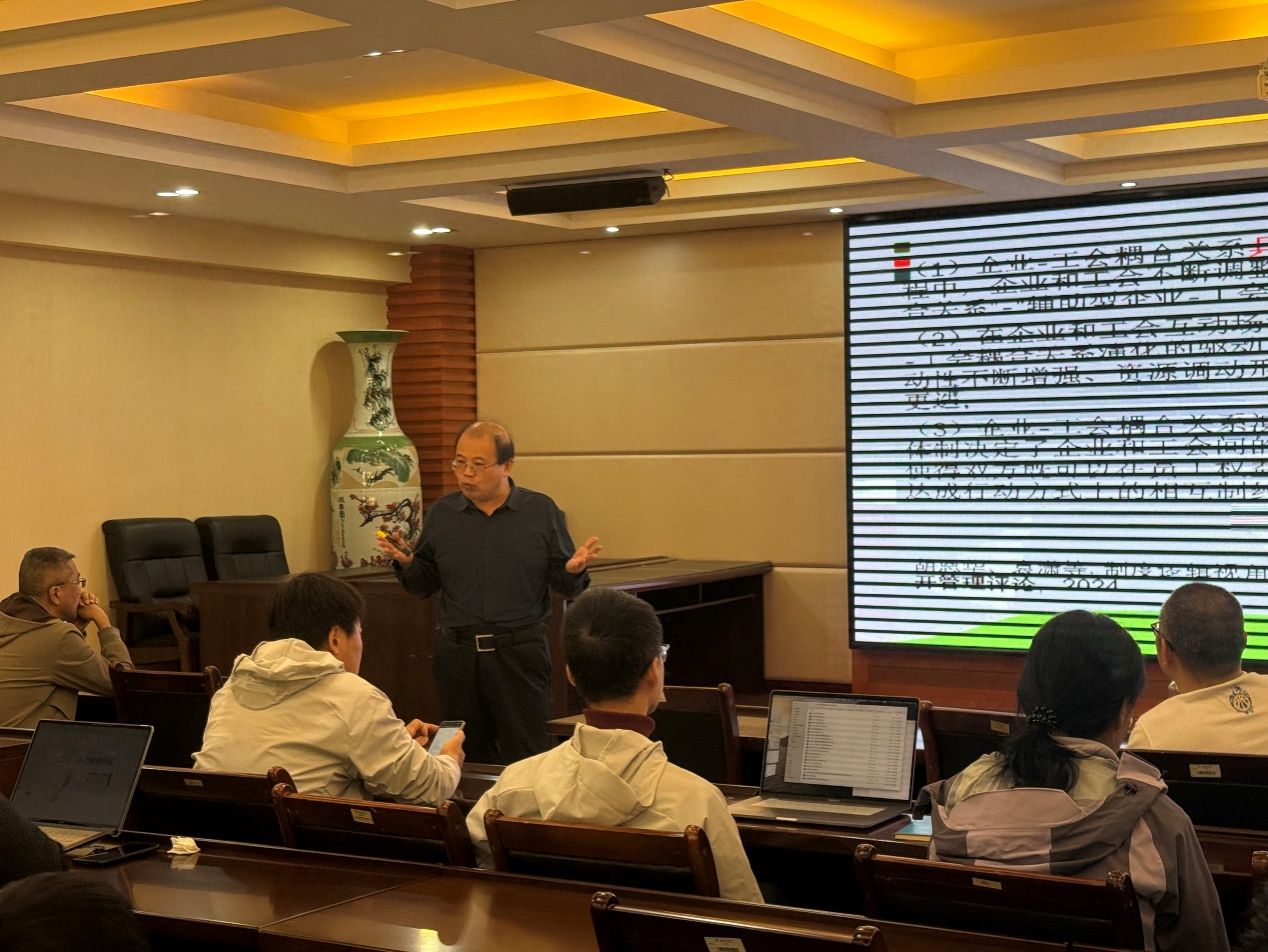 胡恩华教授围绕国家自然科学基金项目的研究问题需要按照“顶天”与“立地”两大逻辑开展,系统阐述了科学研究选题的路径、基金项目研究设计的基本思路,以及科学选题的主要来源,强调选题既体现理论高度,又彰显实践价值。胡恩华教授结合自身多年国家自科基金申报、评审及管理经验,围绕“选题凝练、论证设计、创新点挖掘、申报书撰写规范”等核心环节展开深入讲解。他通过自己申报国家自然科学基金的案例分析,详细剖析了申报成功的共性与关键要素,并针对申报过程中常见的选题重复性高、理论深度不足、研究框架逻辑薄弱等问题提出改进建议。在基金项目研究设计思路方面,胡恩华依据相关事实案例讲明要注重研究的前沿性、创新性并说明研究缘由在研究过程中的重要程度。针对科学选题来源,他建议注重源于实践、源于研究文献以并达成二者的有机结合。在提问交流环节,现场师生踊跃发言,胡恩华教授针对各类问题进行了细致深入的解答,现场互动热烈,学术氛围浓厚。