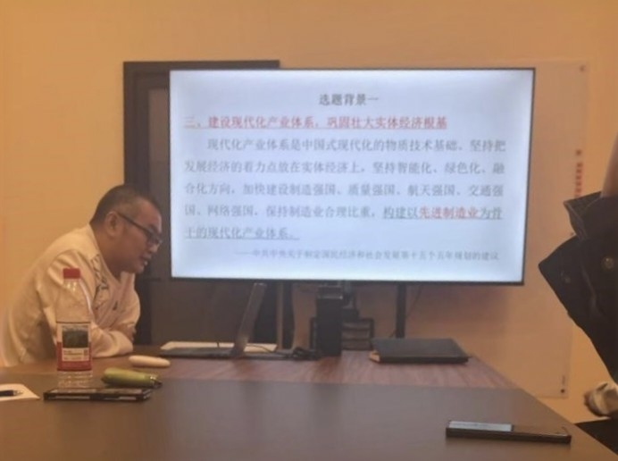 随后,曹金华副教授进一步介绍了题为“人工智能驱动先进制造业高质量发展”的研究框架。系统解析了前沿领域关键生产力的核心构成与驱动逻辑,深入剖析了赋能制造业高质量发展的内在机理、实施路径与政策支撑体系。