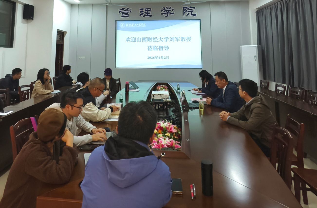 2026年4月2日下午,管理学院“管院大讲堂”2026年第2期在探天楼A214顺利举行。本期讲座特邀山西财经大学国际贸易学院副院长刘军教授担任主讲,主题为“高校经管类期刊的选题与审稿”,吸引了学院众多教师到场聆听。