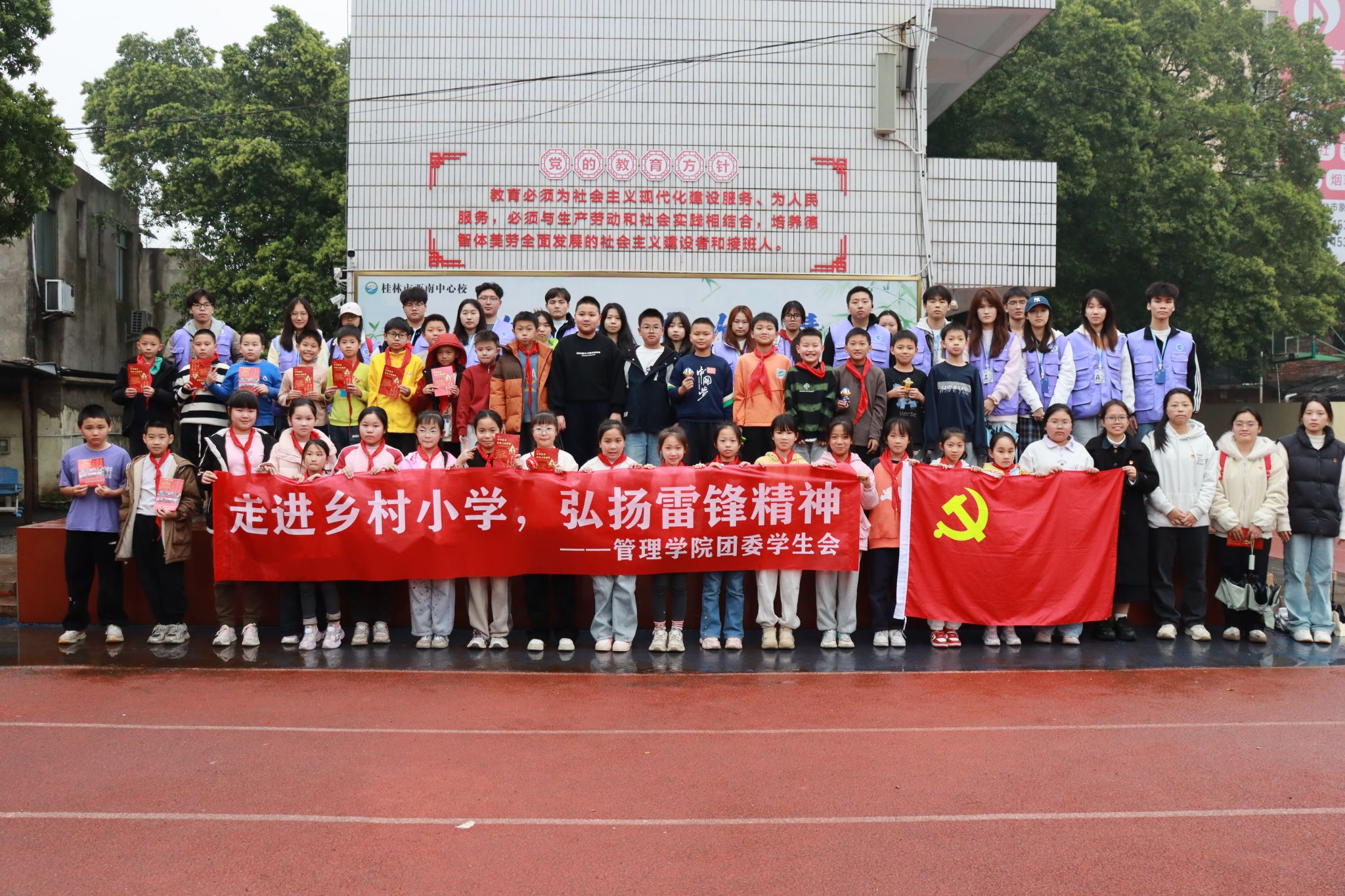 2026年3月23日,管理学院团委学生会联合学生第一党支部,组织志愿者前往桂林市西南中心校分校,开展雷锋精神宣讲活动。