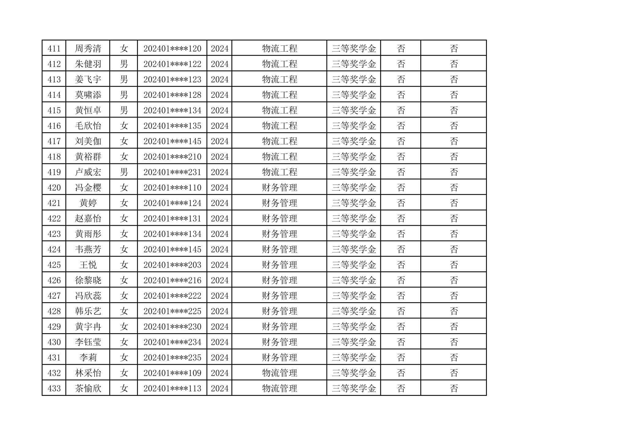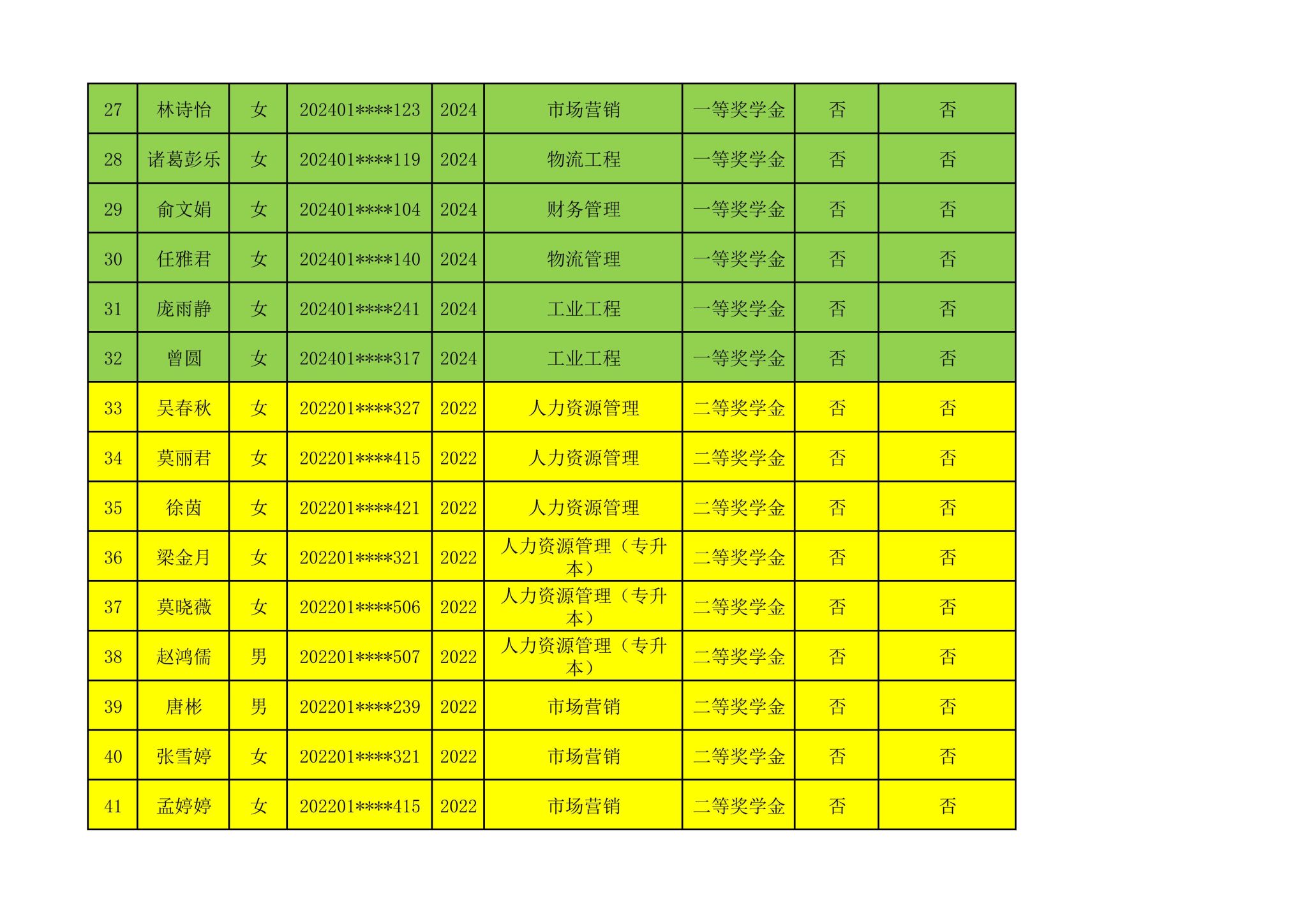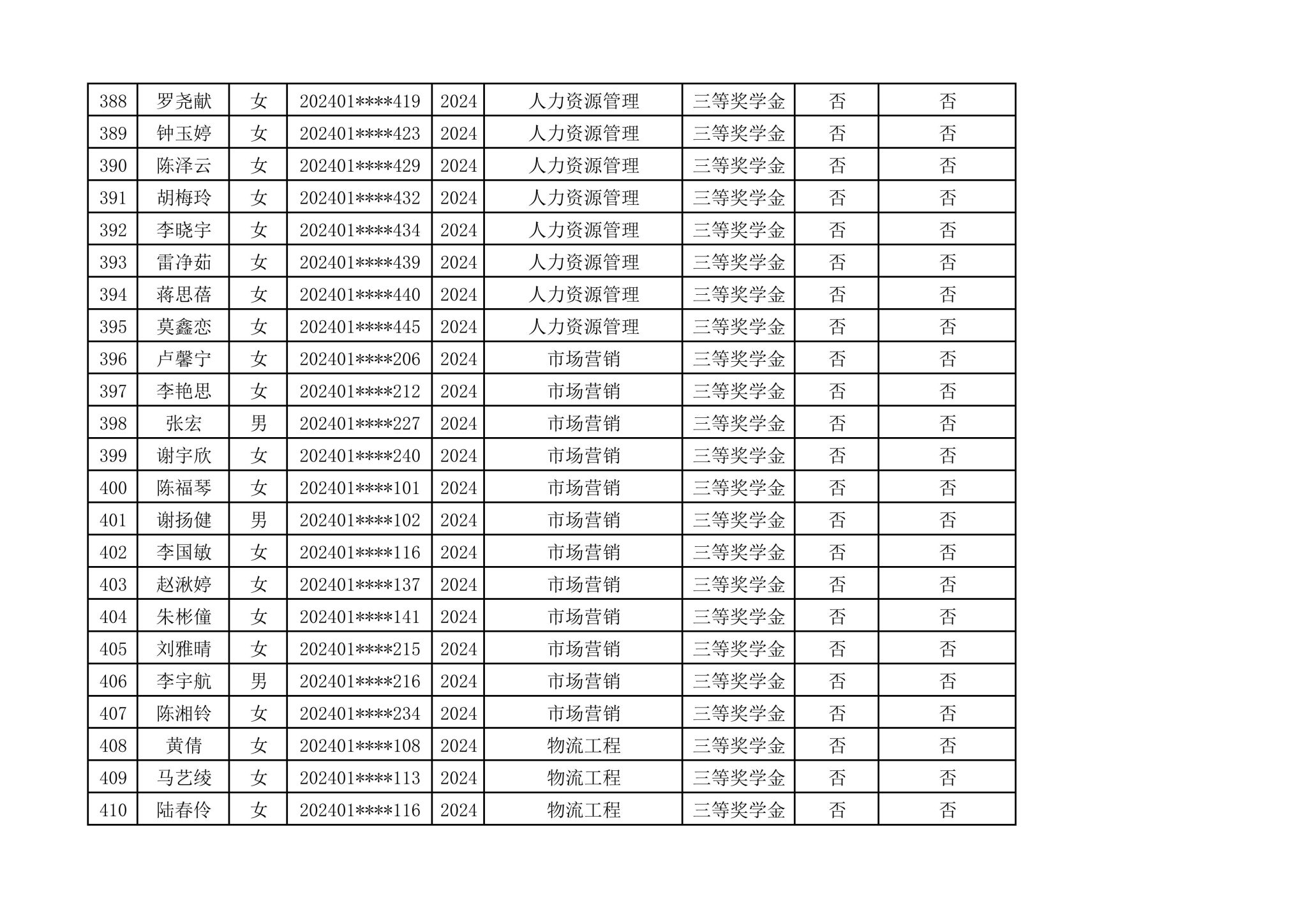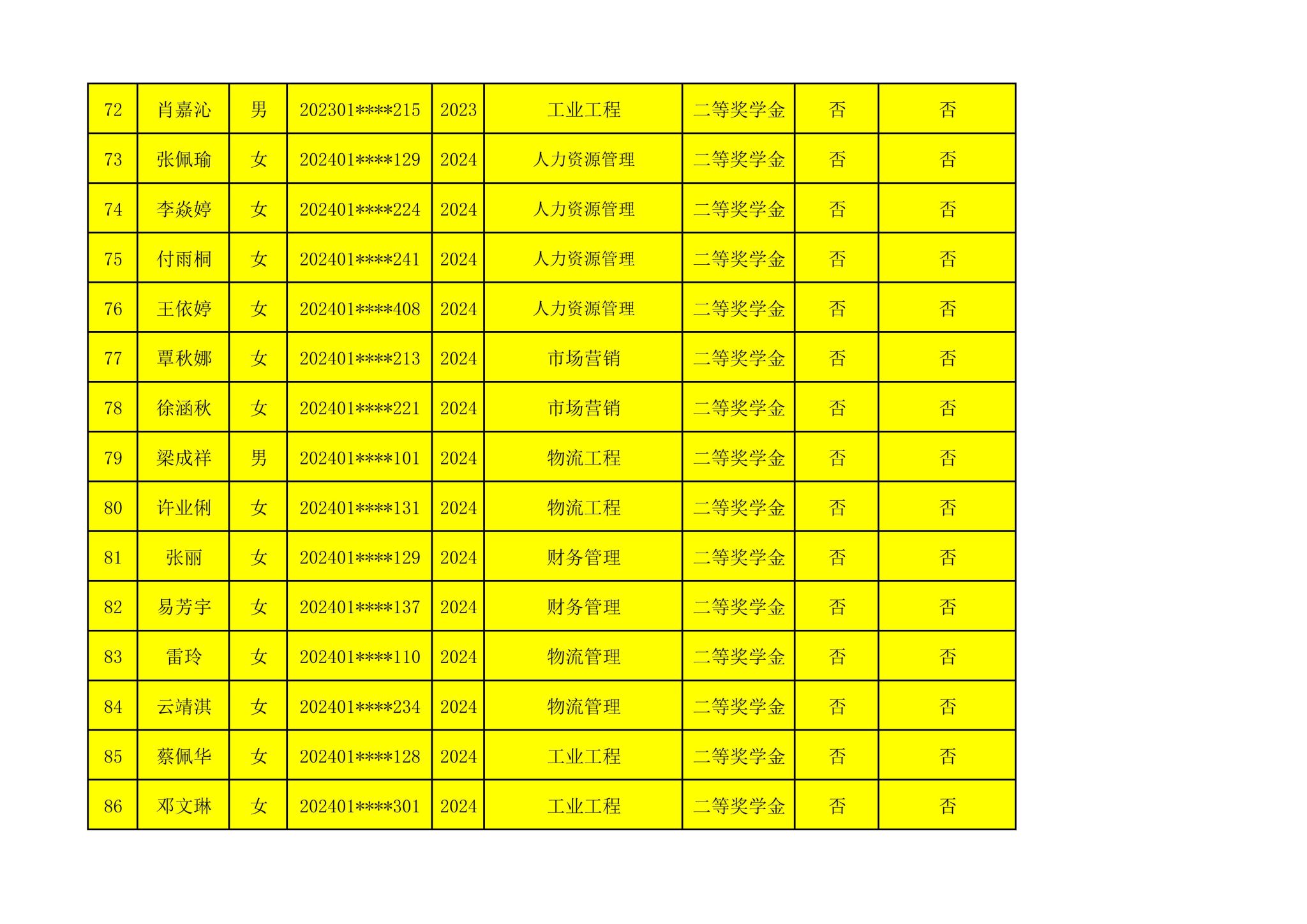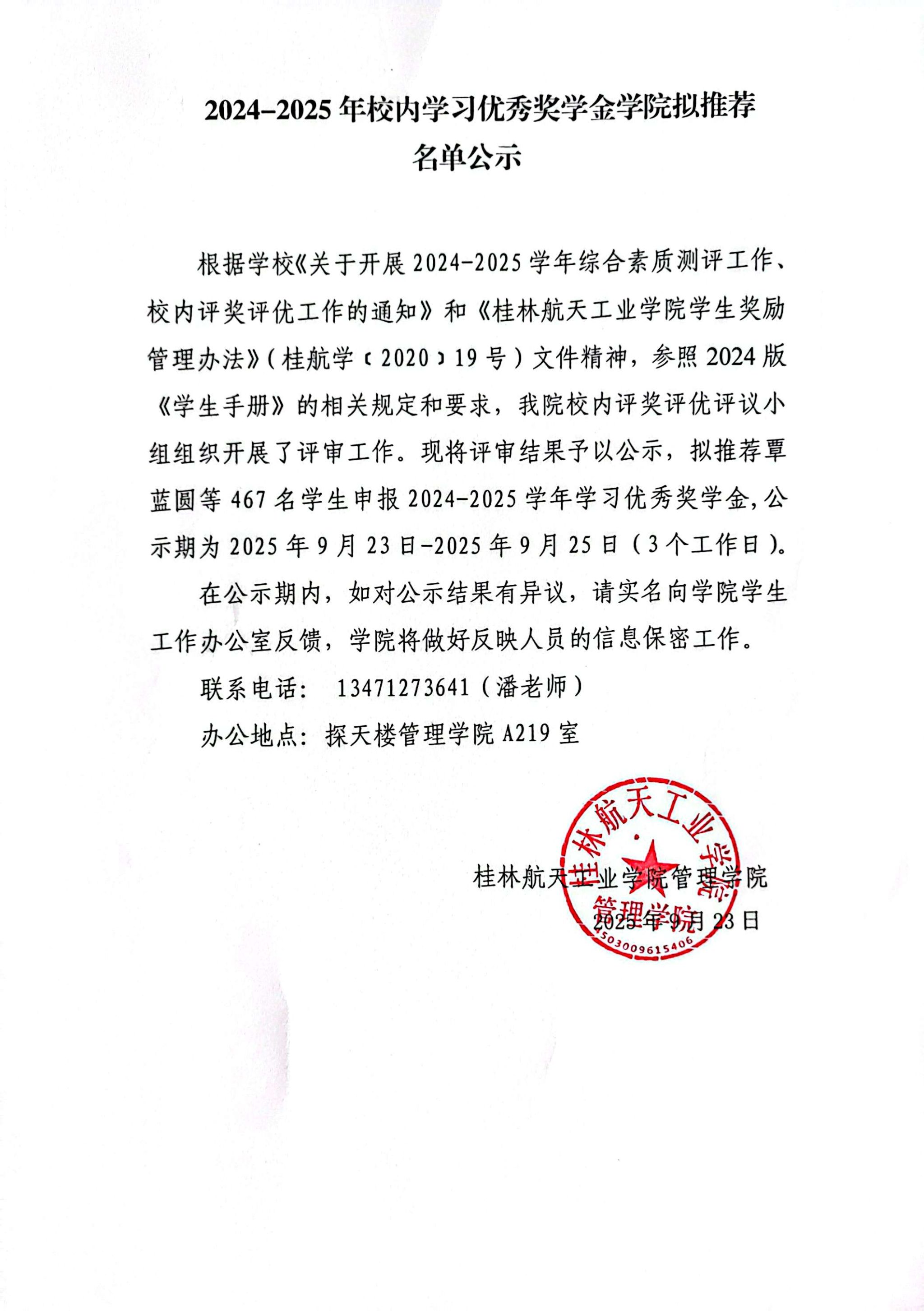 2024-2025学年管理学院拟推荐参加国家奖学金第一轮评选人选公示