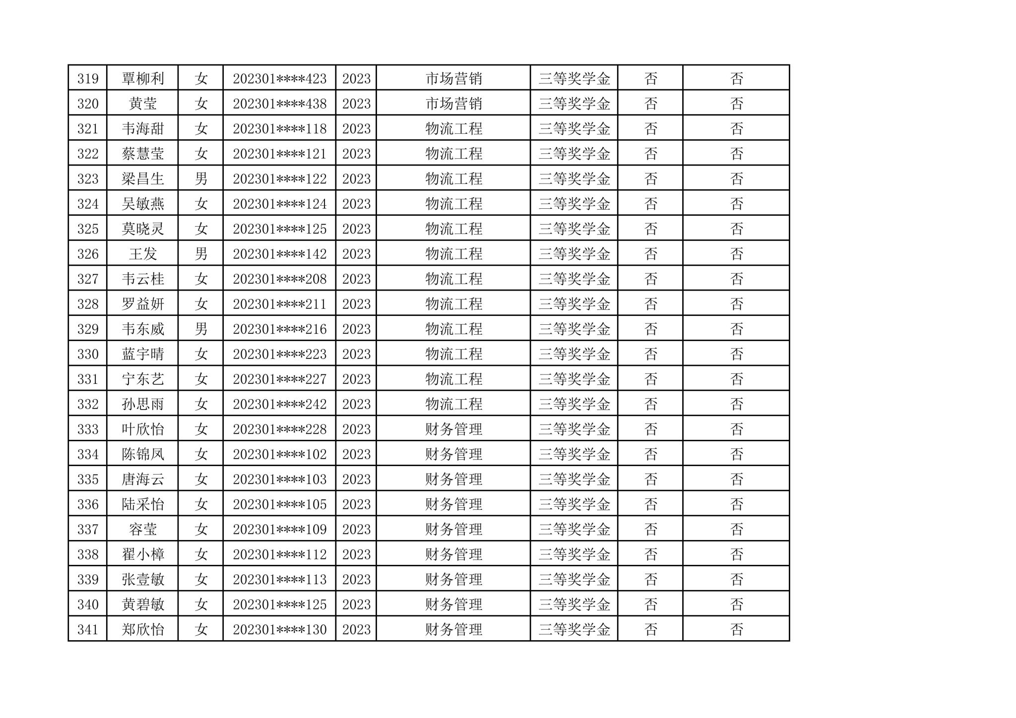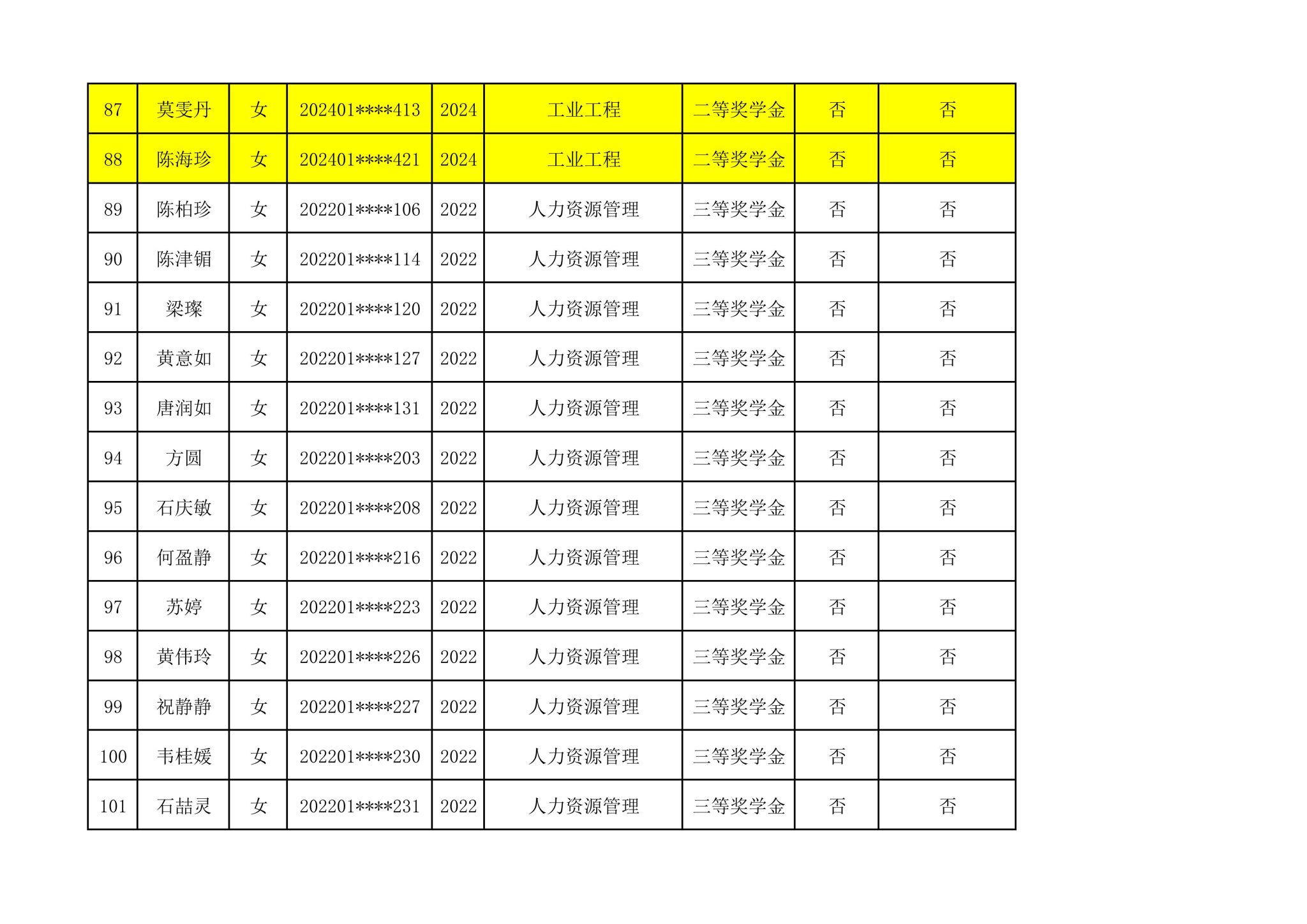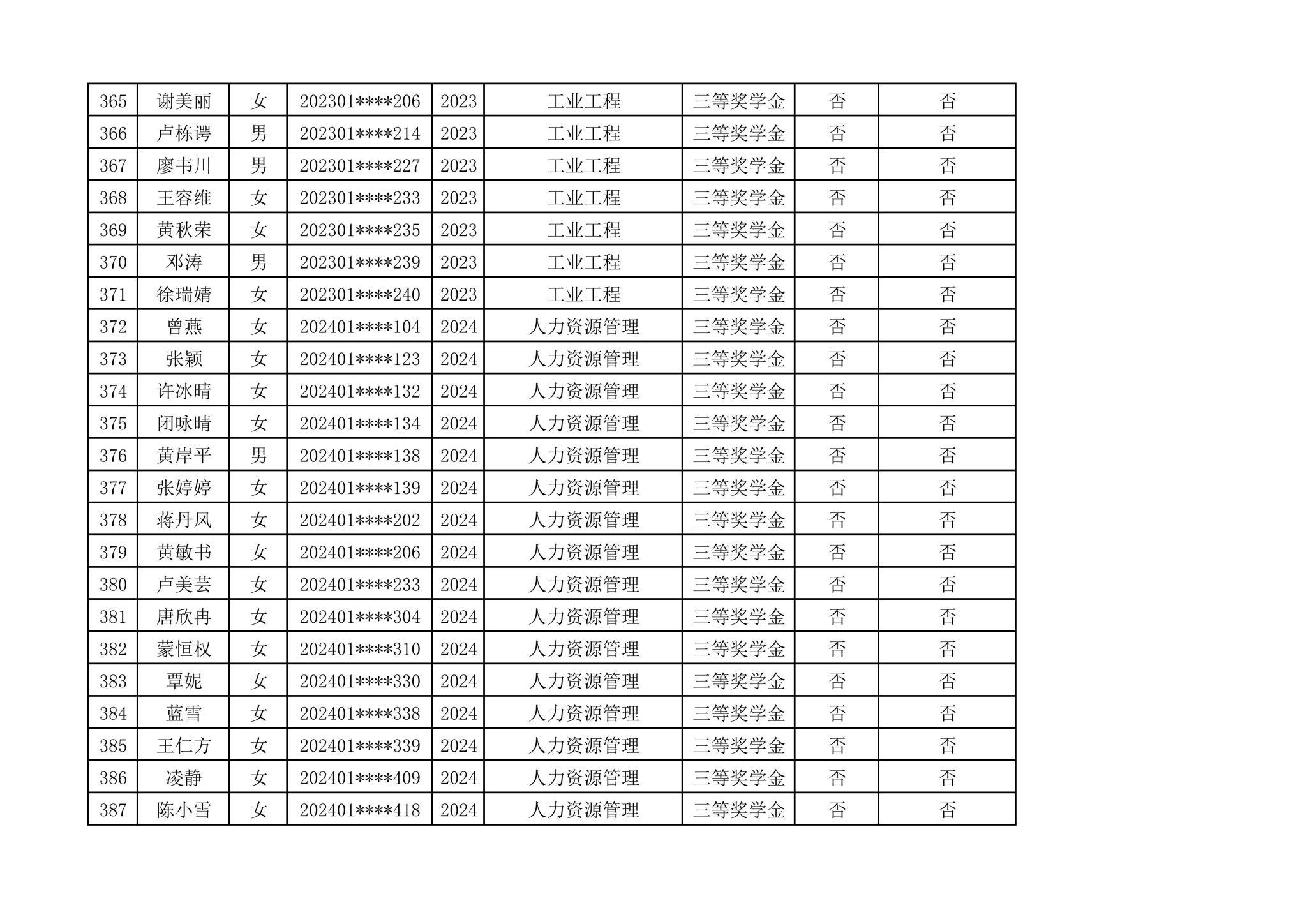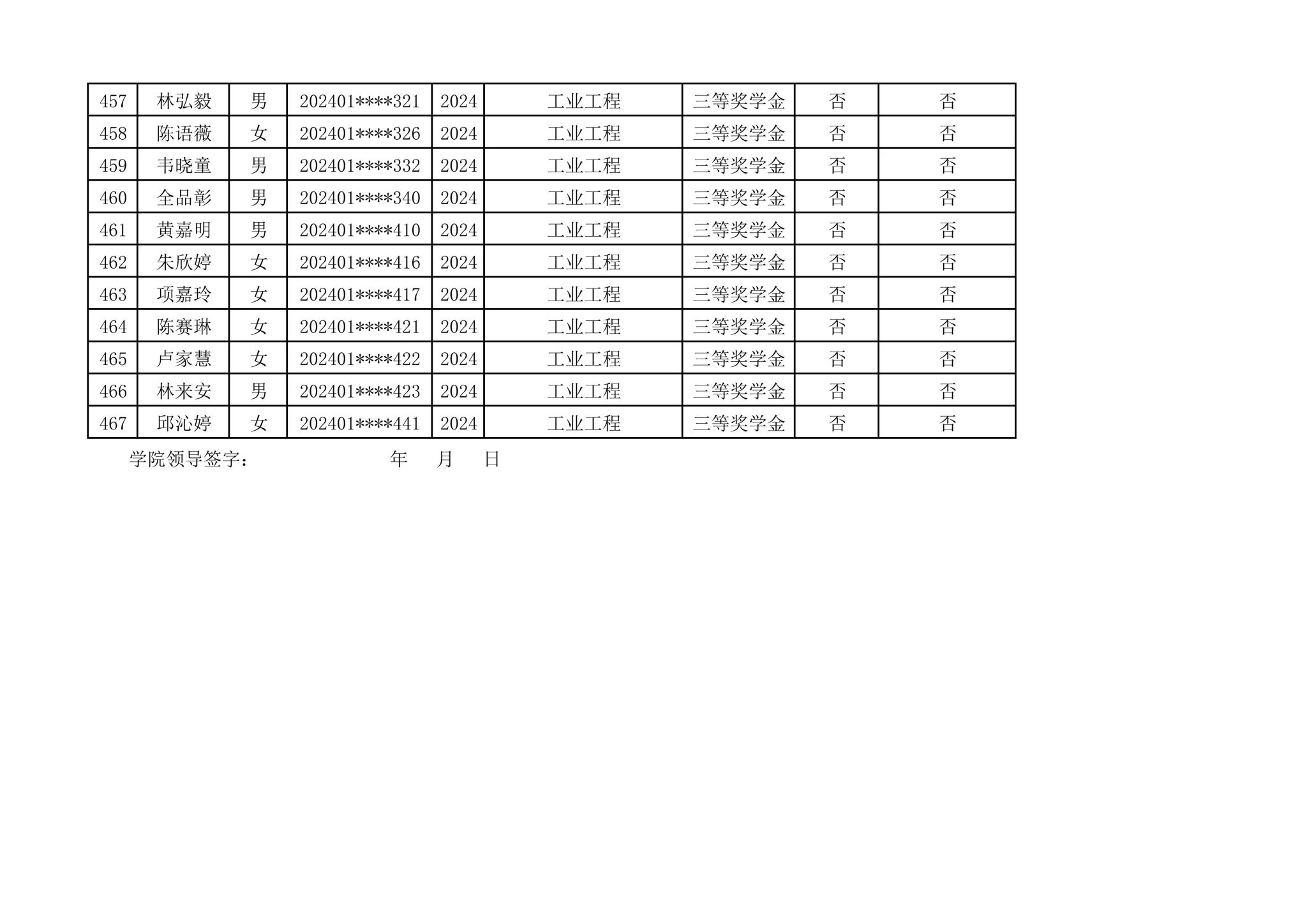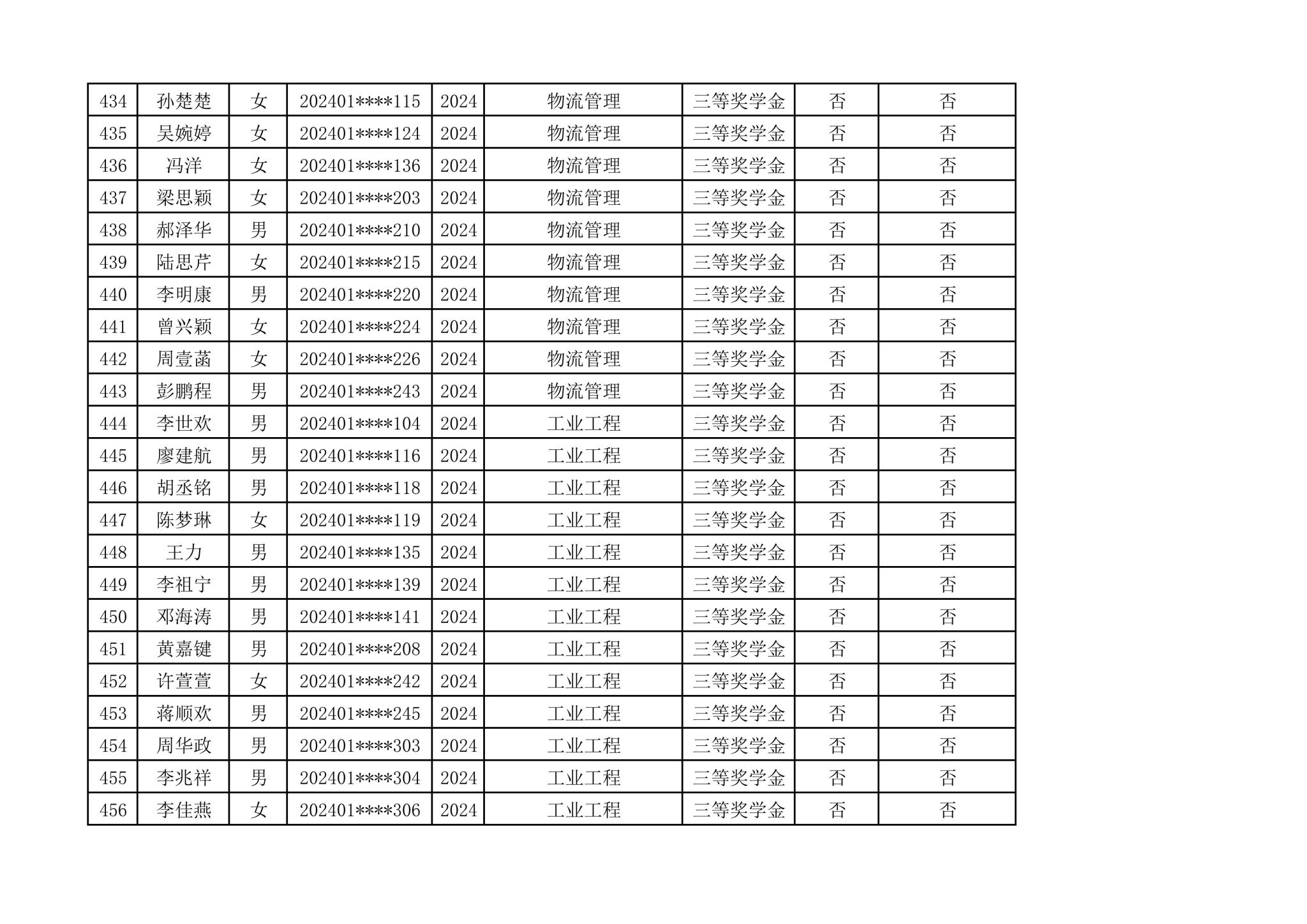 2024-2025学年管理学院拟推荐参加国家奖学金第一轮评选人选公示